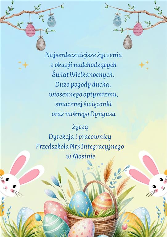 Wielkanoc 3 kwietnia 2026 aktualności Nawigacja wpisu Poprzedni Poprzedni wpis: Powitanie wiosnyNastępny Następny wpis: Konkurs plastyczny